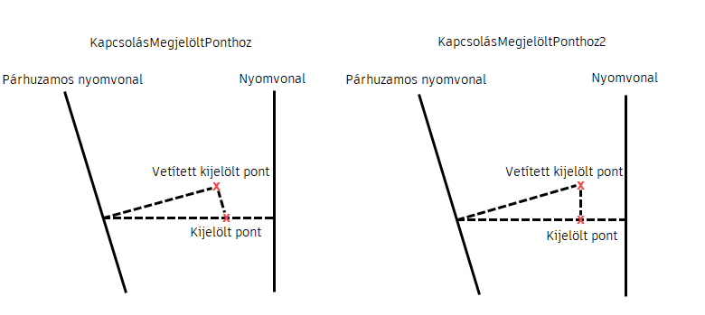 Az elsődleges különbség a KapcsolásMegjelöltPonthoz2 és a KapcsolásMegjelöltPonthoz alkotóelemek között a használatukban van, amikor a megjelölt pont a kapcsolódáshoz képest eltolt mintakeresztszelvény kiindulási vonalán van. Az alábbi ábrán a két alkotóelem közötti eltérés látható.
