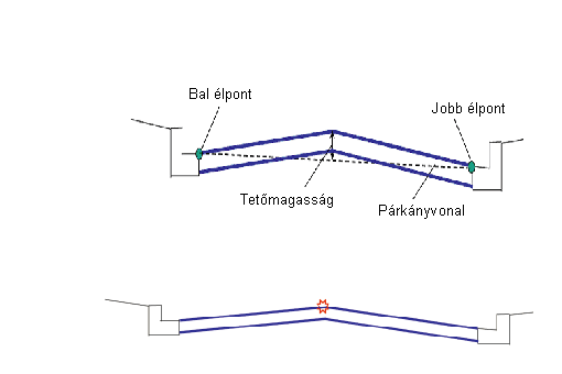 A tetőpont szintmagassága a „bal és jobb élek átlagos szintmagasságának” és a „tetőmagasság” értékének az összege.