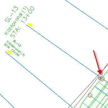 A felső nézetablakban addig húzza és közelítsen, amíg nem látja a 13+00.00 szakaszt.