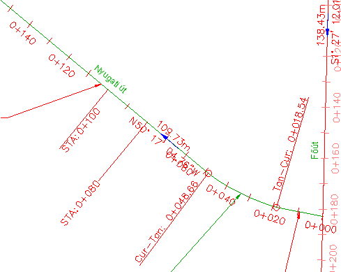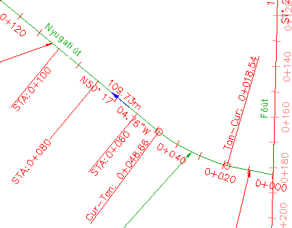 A fogó csak a 0+060 feliraton jelenik meg. A többi főszelvényfelirat nincs kijelölve.