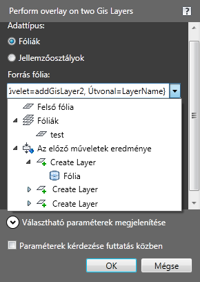 A sorozatos művelet gyakran egy előző művelethez van csatolva. Művelet csatolásakor állítsa be a paramétert úgy, hogy az az előző művelet eredményeként szerepeljen. Használhatja például egy olyan művelet kimenetét, amely létrehoz egy fóliát a következő átfedési művelet forrásfóliájaként.
