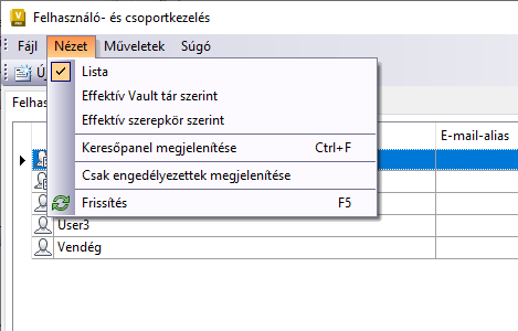 Érvényben lévő Vault tár szerint lehetőséget a felhasználói profilok Vault tárak szerint csoportosított listaként való megtekintéséhez (a felhasználóhoz explicit módon hozzárendelt és a csoporttagságon keresztül örökölt összes Vault tárat belefoglalja).