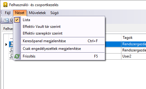 Érvényben lévő Vault tár szerint lehetőséget a csoportok Vault tárak szerint csoportosított listaként való megtekintéséhez (a csoporthoz explicit módon hozzárendelt és a csoporttagságon keresztül örökölt összes Vault tárat belefoglalja).