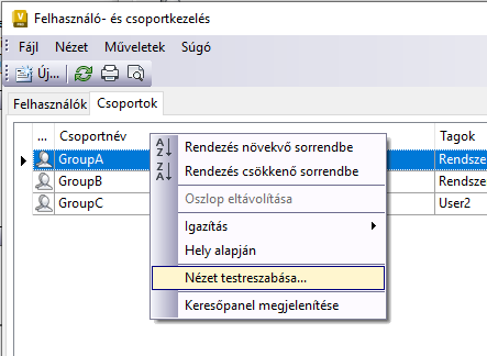 Oszlopmezők hozzáadásával vagy eltávolításával testre szabhatja a megjelenítést. A nézet testreszabásával a felhasználói csoportok kezelése sokkal megfelelőbb lesz a követelményeinek.