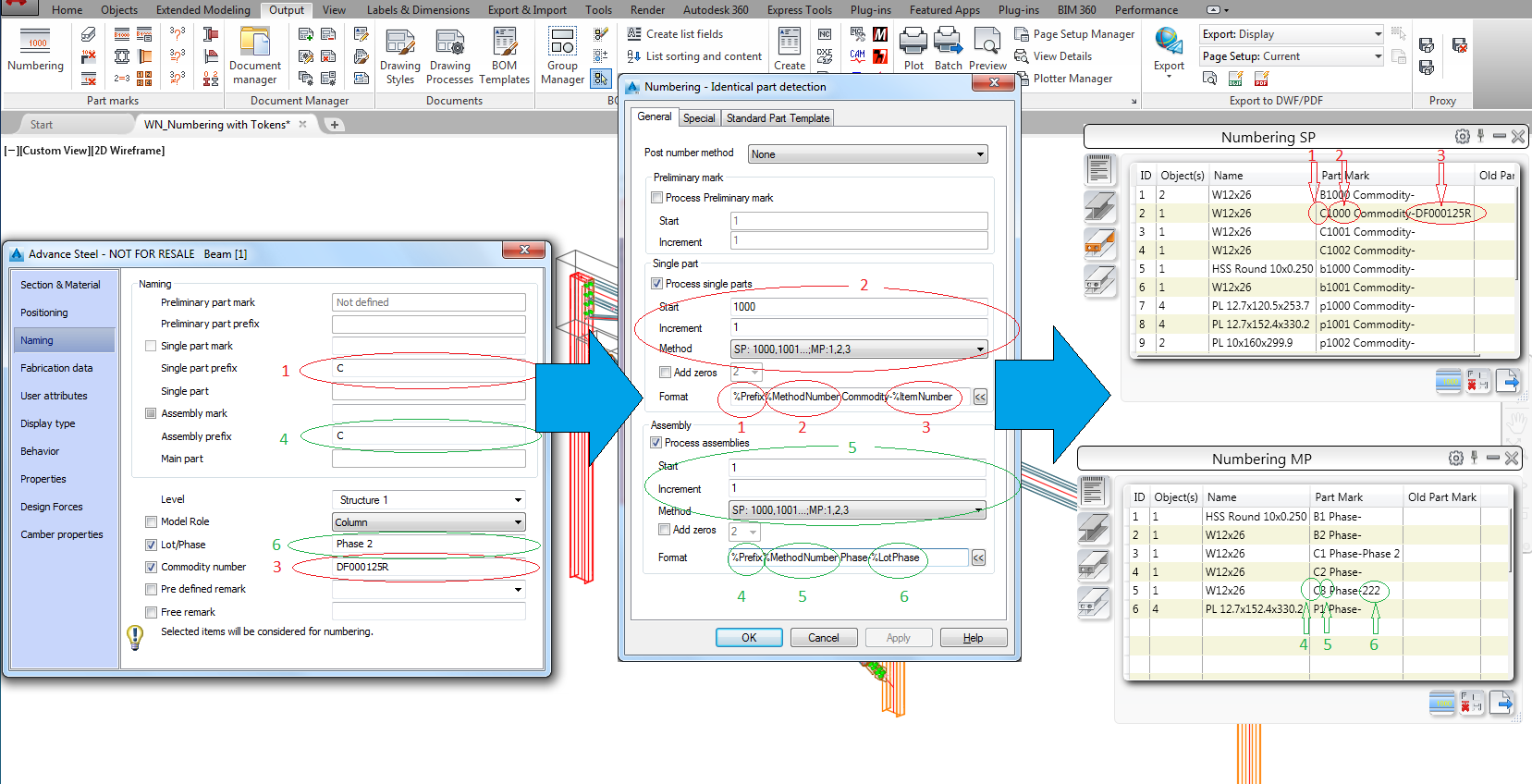 - The Method Number token (%MethodNumber) is mandatory. A warning will be displayed at the bottom of the Numbering dialog when it's missing.