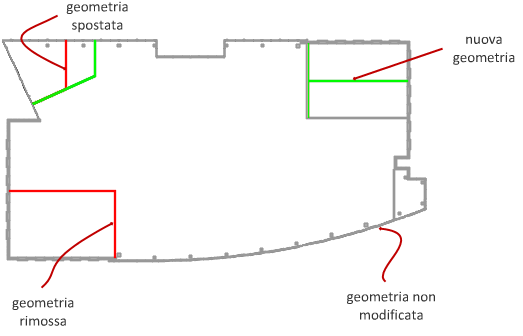 È possibile confrontare visivamente le differenze di geometria tra più disegni o versioni di un disegno. È disponibile un insieme di colori predefiniti per distinguere gli oggetti aggiunti, rimossi, modificati (ad esempio, spostati o ridimensionati) o non modificati. I risultati del confronto visivo tra versioni di un disegno vengono visualizzati in un nuovo disegno, mentre i risultati del confronto tra due disegni vengono visualizzati nel disegno corrente.