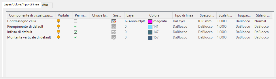 - Fare clic sulla scheda Layer/Colore/Tipo di linea.