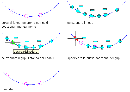 Modifica della posizione di un nodo di una curva di layout mediante i grip