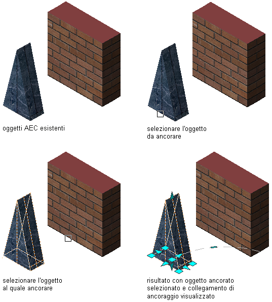 Per creare un'àncora di oggetto fra due oggetti AEC, attenersi alla procedura indicata di seguito.