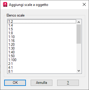 Visualizza l'elenco delle scale che possono essere aggiunte all'oggetto annotativo selezionato.