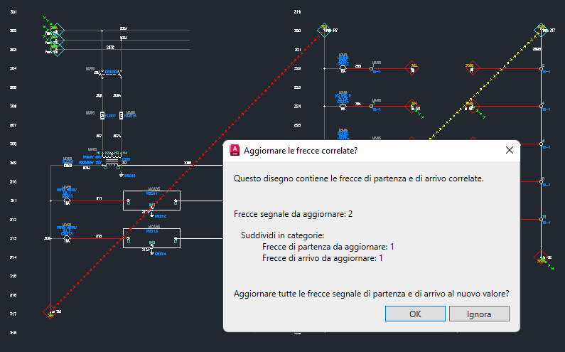 Nelle release precedenti, quando si aggiornava il codice segnale in una delle frecce di partenza, il collegamento tra la freccia di partenza e altre frecce di partenza o di arrivo si interrompeva.