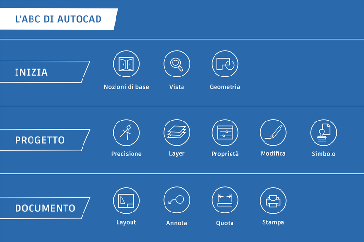 Se è la prima volta che si accede ad AutoCAD o AutoCAD LT, questa guida presenta i comandi essenziali necessari per creare disegni 2D. È anche un ottimo modo per rinfrescare la memoria se è stata appena completata la formazione iniziale o se si utilizza AutoCAD solo occasionalmente.