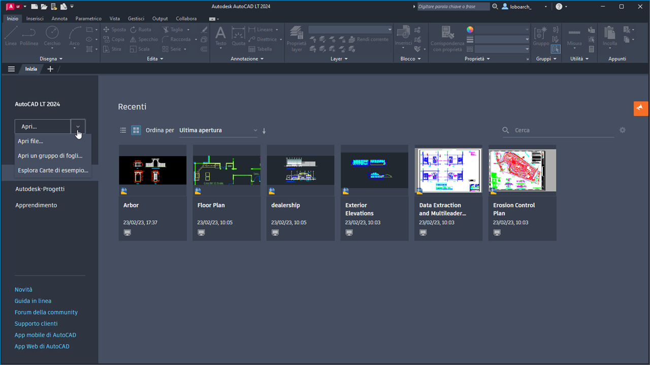Viene descritto come creare un layout, scalare le viste e stampare un disegno.