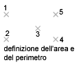 Se il poligono non viene chiuso, l'area viene calcolata come se fosse stata tracciata una linea tra l'ultimo punto specificato e il primo. La lunghezza linea viene aggiunta quando viene calcolato il perimetro.