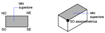 Per comprendere il funzionamento delle viste assonometriche, si immagini di guardare verso il basso l'estremità superiore di una scatola. Se ci si sposta verso l'angolo inferiore sinistro della scatola, la si visualizza dalla vista assonometrica SO. Spostandosi verso l'angolo superiore destro, si visualizza la scatola dal NE assonometrico.
