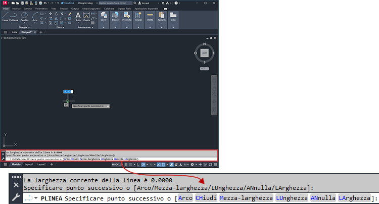 ). Quando si nasconde la finestra dei comandi, è comunque possibile immettere i comandi nella descrizione dell'input dinamico. Alcuni comandi e variabili di sistema restituiscono valori alla riga di comando, per cui in questi casi potrebbe essere opportuno visualizzarla nuovamente.