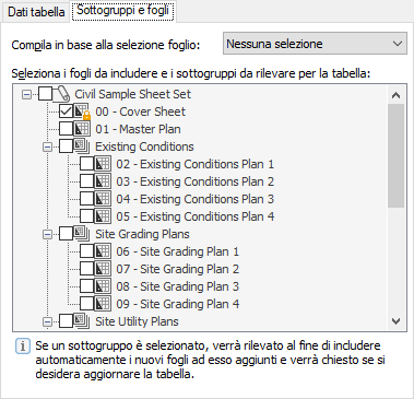 Visualizza i sottogruppi di fogli che verranno aggiornati automaticamente.