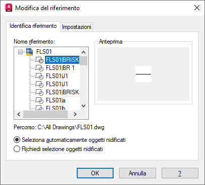 Per specificare un riferimento, selezionare un oggetto del riferimento. Se si seleziona un oggetto che appartiene ad uno o più riferimenti nidificati, tali riferimenti vengono visualizzati nella finestra di dialogo.