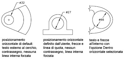 È possibile creare diversi stili di quote di diametro differenti, come mostrato nelle illustrazioni.