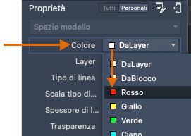Assegnare proprietà quali il colore e il tipo di linea a singoli oggetti oppure ai layer come proprietà di default.