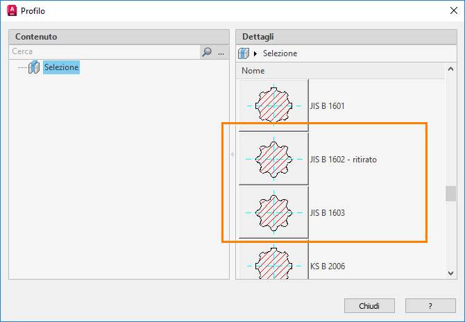 Il nuovo standard JIS B 1603 sostituisce JIS B 1602 nel Set di strumenti AutoCAD Mechanical 2024.