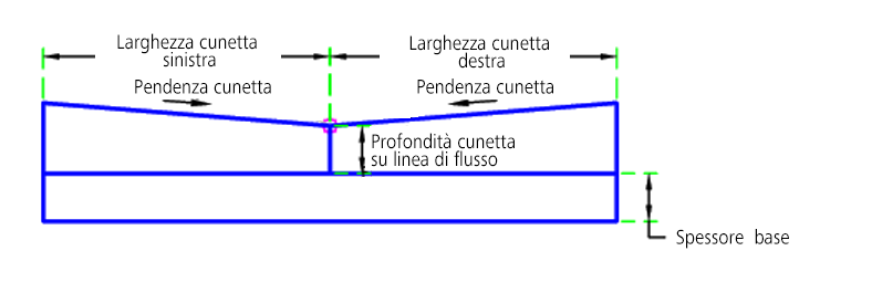 | Spessore base | Spessore della base sotto la cunetta | Numerico, positivo |