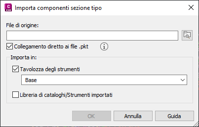 - La casella di controllo Collegamento diretto ai file .pkt è stata aggiunta alla finestra di dialogo Importa componenti sezione tipo in modo da poter fare riferimento ai file PKT del componente sezione tipo dalla posizione esistente, ad esempio una LAN o Autodesk Docs, anziché importarli nella cartella ProgramData.
