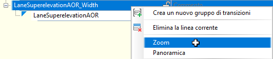 - Se si modifica la progressiva finale di una transizione, la progressiva iniziale è regolata per mantenere la lunghezza della transizione.