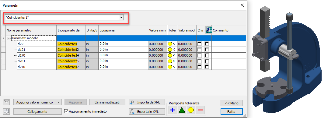 È ora possibile trovare rapidamente i parametri utilizzando la nuova casella di ricerca che è stata aggiunta nella parte superiore della finestra di dialogo Parametri. I risultati della ricerca vengono aggiornati automaticamente quando si specificano i criteri di ricerca e si evidenzia la ricerca corrispondente. La ricerca viene eseguita in tutti i campi dei parametri ed è possibile combinare vari criteri di ricerca o limitare la ricerca in base alle esigenze, ad esempio in una colonna richiesta.