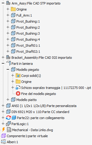 Come negli assiemi, le icone che indicano la trasparenza sono disponibili nel browser dell'ambiente di disegno.