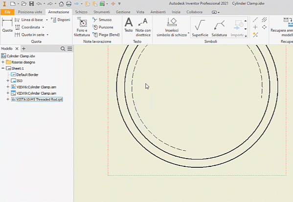 È ora possibile fare doppio clic su una nota filettatura interna o esterna per aprire l'editor di testo in un file di disegno.