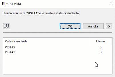 Quando si elimina una vista con viste dipendenti, per default la finestra di dialogo Elimina vista visualizza ora le viste dipendenti. Ciò consente di specificare facilmente quali viste dipendenti devono essere mantenuta o eliminata. Per default, ogni vista dipendente è impostata su Sì per l'eliminazione. Per modificare l'impostazione, fare clic sulla voce Elimina. In precedenza, era necessario fare clic sul pulsante Espandi