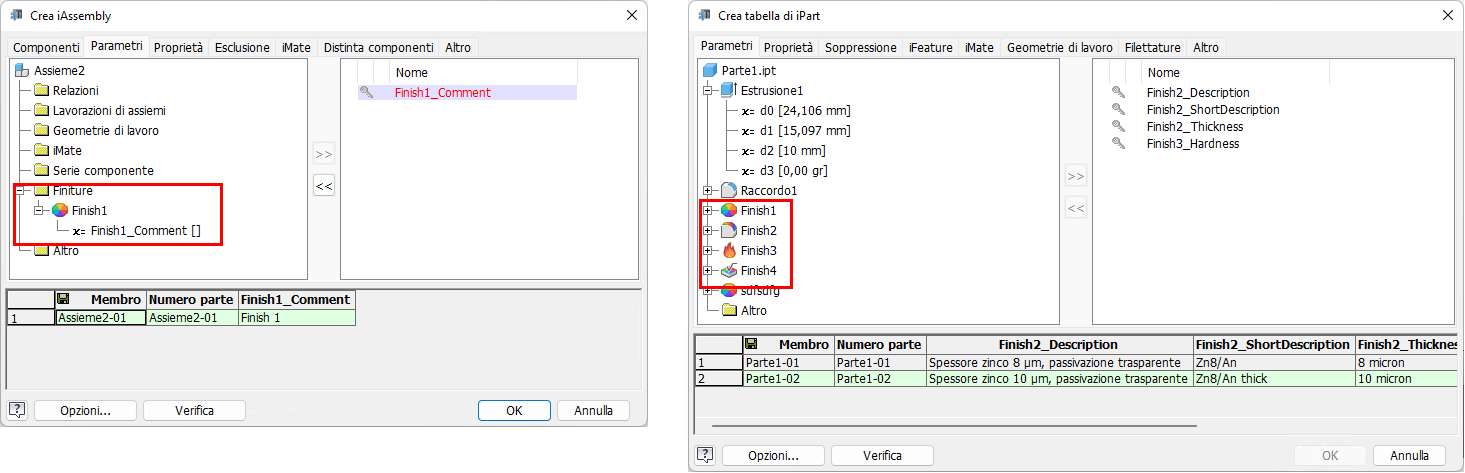 I parametri della lavorazione Finitura possono ora essere acquisiti in una iPart e/o in un iAssembly utilizzando i flussi di lavoro di creazione.