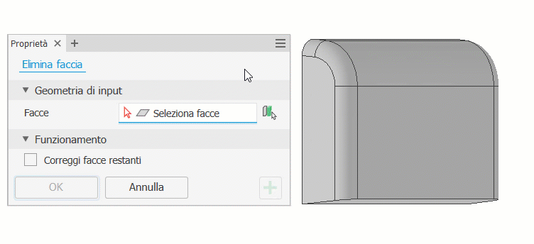 Lo stato di ultimo utilizzo dell'opzione Correggi facce restanti viene ora memorizzato, anche se la finestra di dialogo viene annullata. Selezionarlo una volta e, da quel momento in poi, verrà memorizzato. L'impostazione di default prevede che l'opzione sia deselezionata.