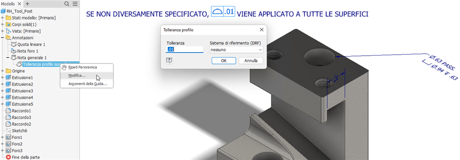 Nota sulla tolleranza del profilo superficie generale