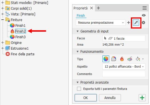 Per ulteriori informazioni, vedere Come assegnare una finitura ad un componente.
