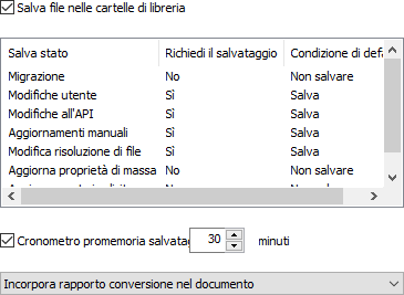 Per ulteriori informazioni, vedere Scheda Salva (Opzioni applicazione): riferimenti.