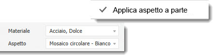 L'opzione Applica aspetto alla parte è stata aggiunta al menu Impostazioni avanzate per Inserisci, Modifica, Riutilizza e Modifica riutilizzo. Abilitare la nuova opzione affinché il colore delle parti del telaio sia identico a quello dell'assieme. In precedenza per le parti del telaio non veniva utilizzato il colore aspetto dell'assieme.
