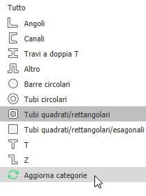Nell'elenco a discesa Categorie è stato aggiunto Aggiorna categorie, che consente di ricreare l'elenco per includere voci di libreria di lettura/scrittura personalizzate.