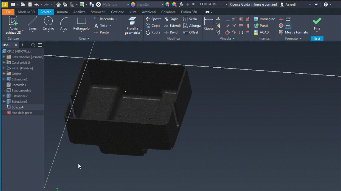 Quando l'opzione Proietta geometria è attiva, è possibile passare dalla geometria di schizzo alla geometria di costruzione tenendo premuto il tasto MAIUSC quando si fa clic sulla geometria che si desidera proiettare. Questo miglioramento funziona per gli schizzi 2D e 3D.