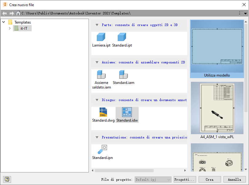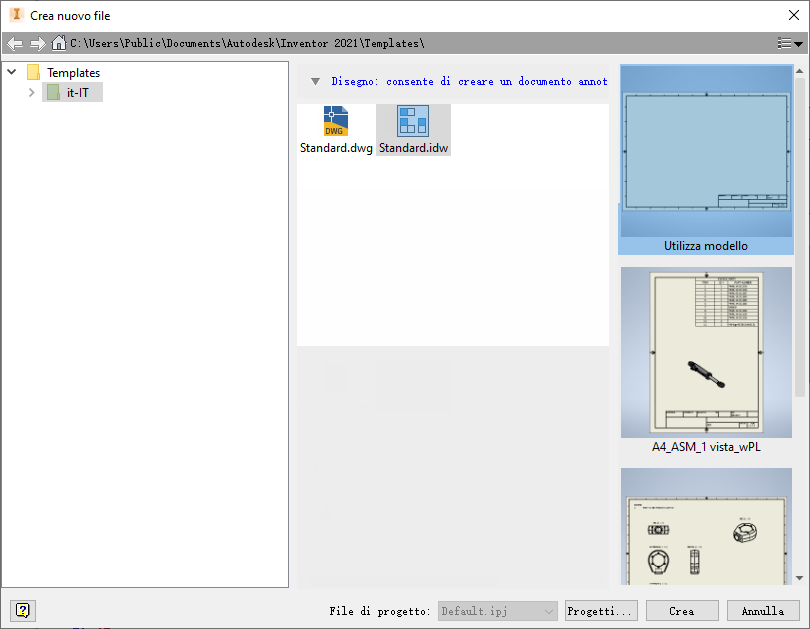 Per ulteriori informazioni, vedere Esempi di creazione di un nuovo file di disegno.