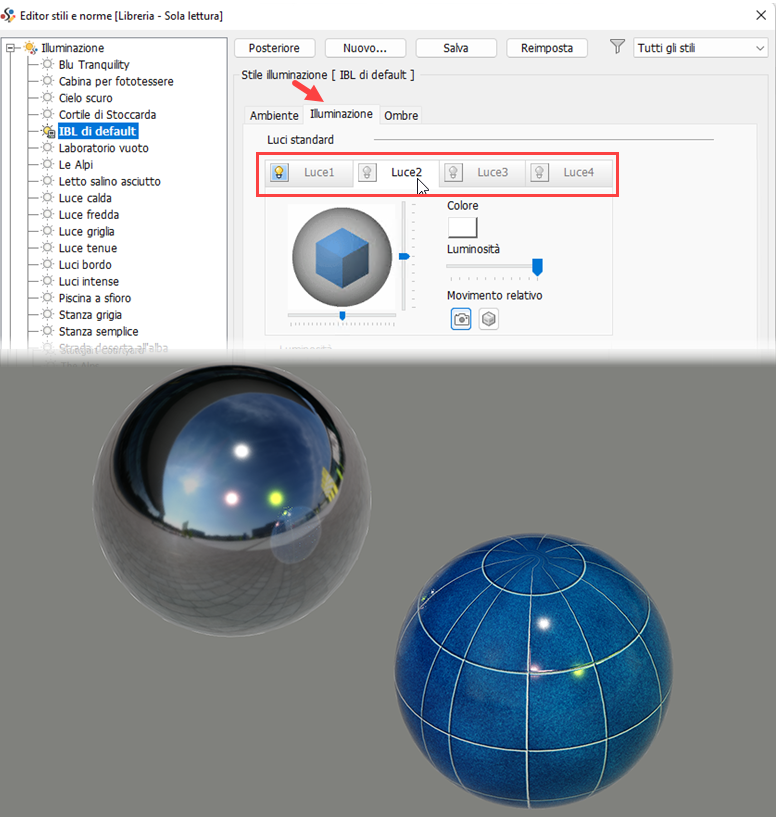 Per ulteriori informazioni, vedere Informazioni sugli stili di illuminazione e Come utilizzare gli stili di illuminazione.
