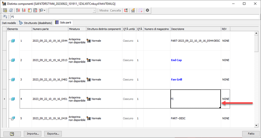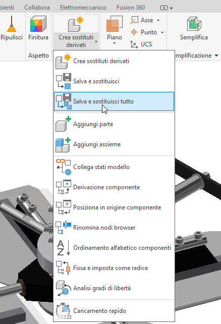 Salva e sostituisci tutto: le istanze di un componente sono state importate da un'opzione in un utensile accessibile dal pannello Assembla