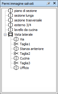 La finestra Fermi immagine salvati è una finestra agganciabile che consente di creare e gestire differenti viste del modello, per passare a fermi immagine preimpostati senza dover navigare ogni volta per raggiungere l'elemento desiderato.