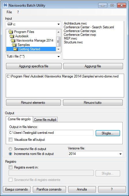 Nella finestra di dialogo Batch Utility di Navisworks, fare clic sul pulsante Esegui comando.