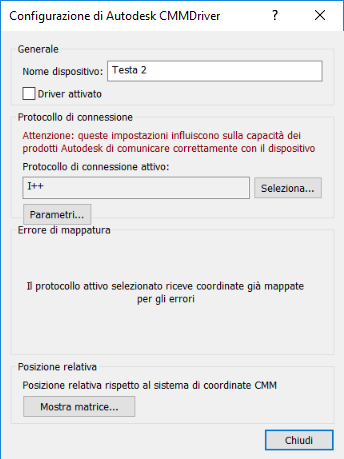 Viene visualizzata la finestra di dialogo Configurazione di Autodesk CMMDriver.