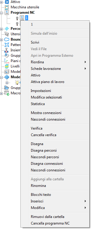Per visualizzare il menu, nell'Explorer, fare clic con il tasto destro su un Programma NC.
