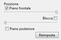 Blocca — Blocca i piani di taglio frontale e posteriore nella posizione corrente. Di conseguenza, quando un piano di taglio viene spostato, anche l'altro viene spostato rispetto a questo, mantenendo la stessa distanza tra loro.