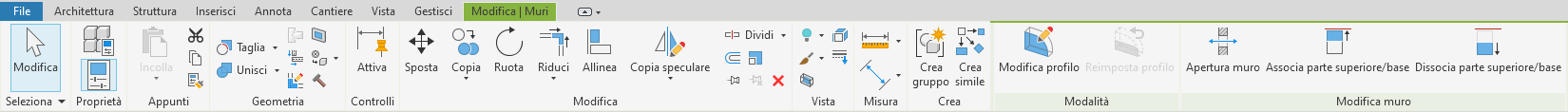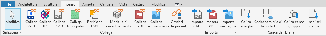 La barra multifunzione viene visualizzata quando si crea o si apre un file e fornisce accesso a tutti gli strumenti necessari alla creazione di un progetto o di una famiglia.