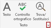 Una freccia accanto al nome di un gruppo indica che è possibile espandere il gruppo per visualizzare strumenti e controlli correlati.